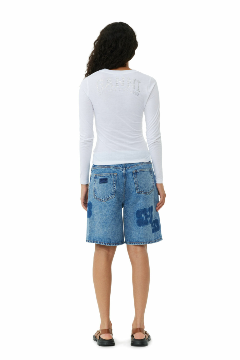 “Round neckline. Long sleeves. Rhinestone artwork at the back. This piece is made with CIRCULOSE®. CIRCULOSE® is a new natural material made by recovering worn-out cotton clothes into a dissolving pulp. Pulp is used to make cellulosic fibres like viscose, lyocell and modal but the only difference with CIRCULOSE® is that the pulp is made from textile waste instead of wood. In a breakthrough process powered by 100% renewable energy discarded textiles are transformed into a new material that needs no cotton fields, no oil, and no trees.”